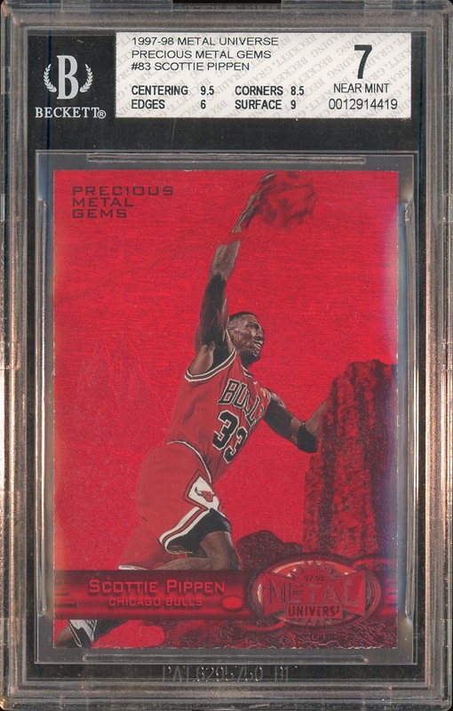 1997-98 Metal Universe Precious Metal Gems Scottie Pippen #83 Red /100 BGS 7