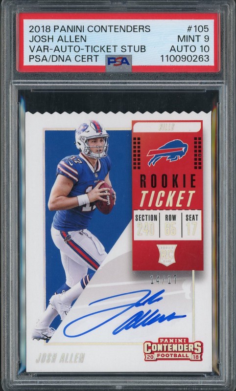 $5,149🚀 3.43x2018 Panini Contenders Rookie Ticket Josh Allen #105 Ticket Stub Autograph /17 PSA 9 Auto 10F12313 days ago